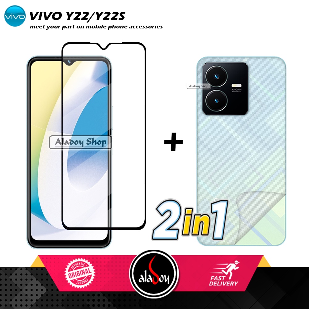 Detail PAKET 2 IN 1 Tempered Glass Layar Vivo Y22/Y22S + Skin Carbon Film 3D