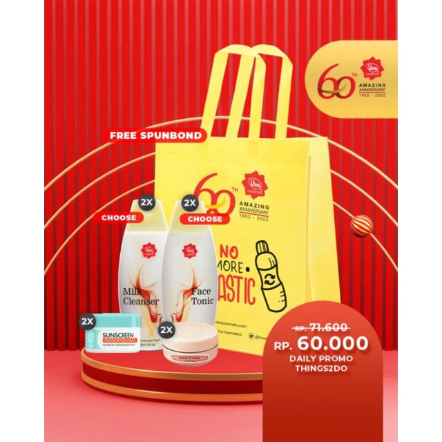 Detail Paket 2 Milk Cleanser 100Ml 2 Face Tonic 100Ml 2 Sunscreen Foundation 2 Moist Cream FREE 1 Pcs Tas Spunbond