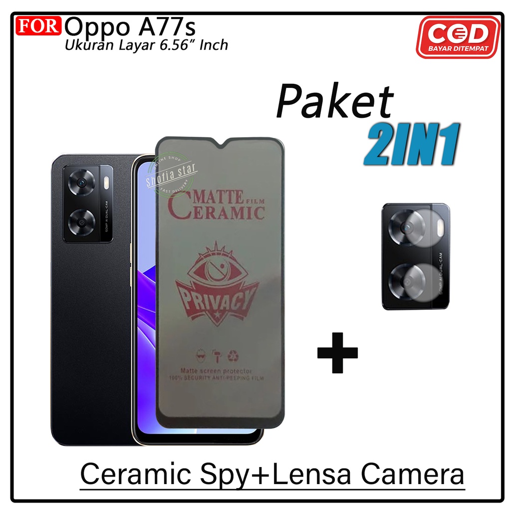 PAKET 2IN1 Ceramik Privacy Matte Oppo A77s Anti Spy Full CoverTEMPERED GLASS LAYAR BERBAGAI VARIASI