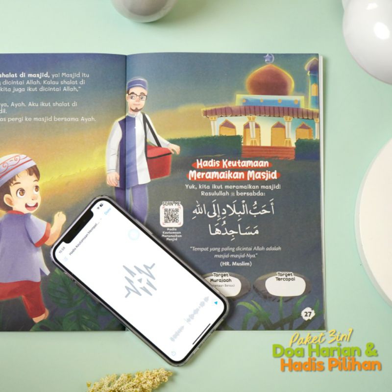 [Paket 3 IN 1 Doa Harian & Hadis Pilihan] Belajar Menghafal Doa Harian & Hadis Pilihan melalui cerita seru & aktivitas menyenangkan. Sekolah terbaik bagi anak adalah keluarga. Maka penting bagi Ayah Bunda menanamkan nilai-nilai agama sejak dini agar Si Kecil mulai ‘dekat dengan Tuhannya’ sedari sekarang. Salah satunya dengan mengajarinya berdoa di setiap aktivitasnya. Mulai dari bangun tidur hingga tidur lagi, ada peluang pahala dan kebaikan saat disertai dengan doa.