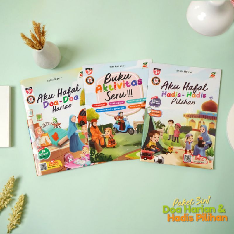 Yuk, ajak si Kecil menghafalkan doa sehari-hari dan hadis-hadis pilihan melalui cerita menarik dan aktivitas seru Dapatkan harga termurah hanya selama Pre Order! =======PRE ORDER========== PAKET 3 IN 1 DOA HARIAN & HADIS PILIHAN (Untuk Usia 3th+)