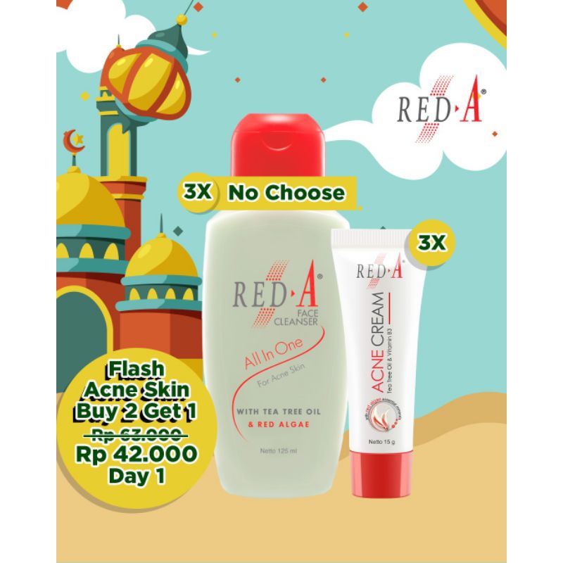 Paket 3 Red-A Acne Cream3 Red-A Face Cleanser AIO Acne 125 ml