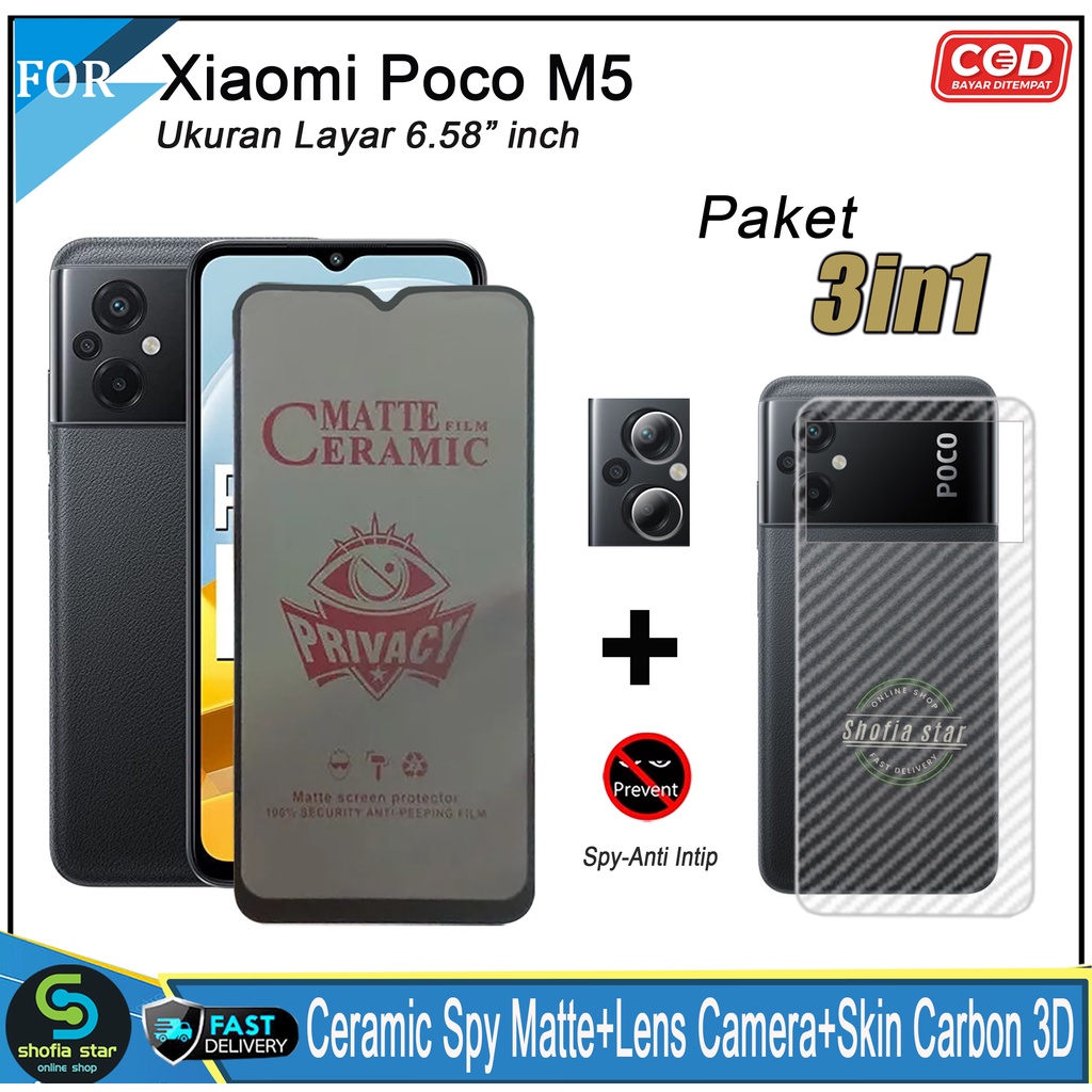 Paket 3in1 Tempered Glass Privacy Matte Xiaomi Poco M5 Poco F5 Poco M5s Poco Poco X5 5G Anti Gores Anti Spy Full Layar