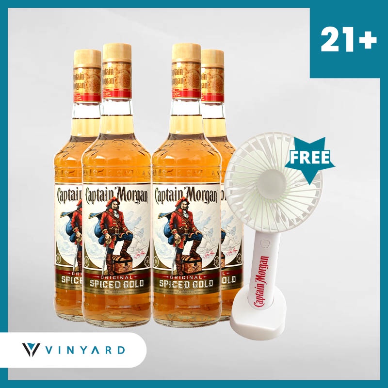 Makanan & Minuman > Minuman Alkohol > Liquor & Spirits > Paket 4 Botol Captain Morgan Gold Spiced Rum 750ml Free Electric Fan (Ori & Resmi 100% by Vinyard )