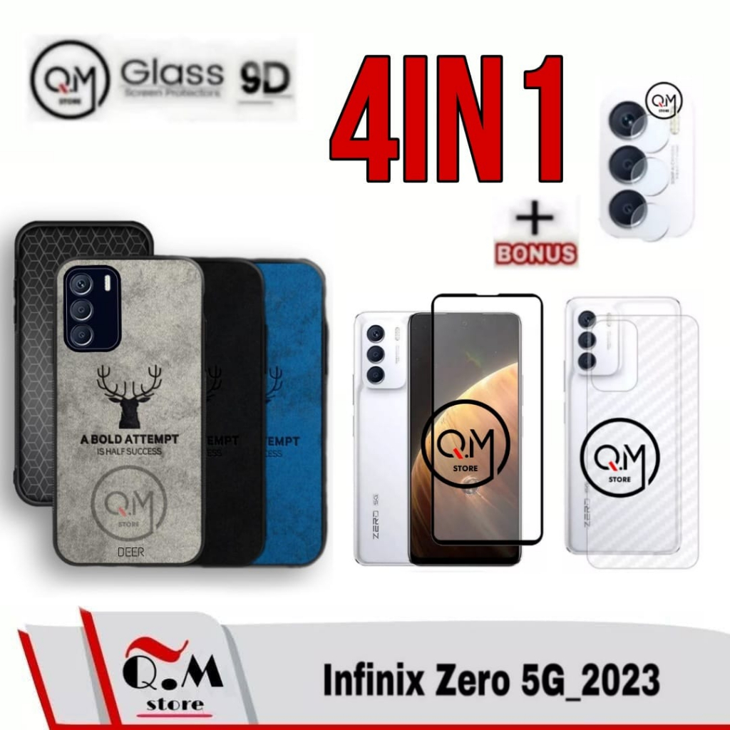 Detail Paket 4in1 Case Infinix Zero 5G 2023 Softcase Deer Bermotif Jens Pelindung Back Cover