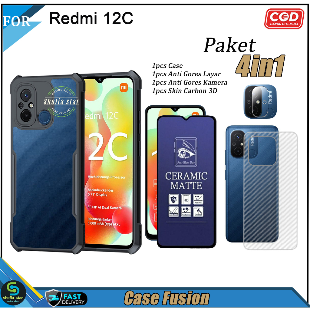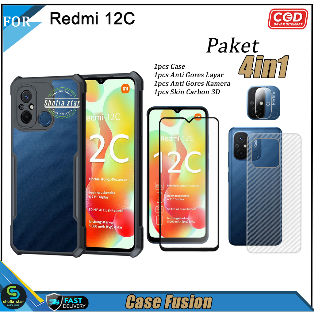 PAKET 4in1 Case Redmi 12C Soft Case Fusion Shockproof Transparan Casing