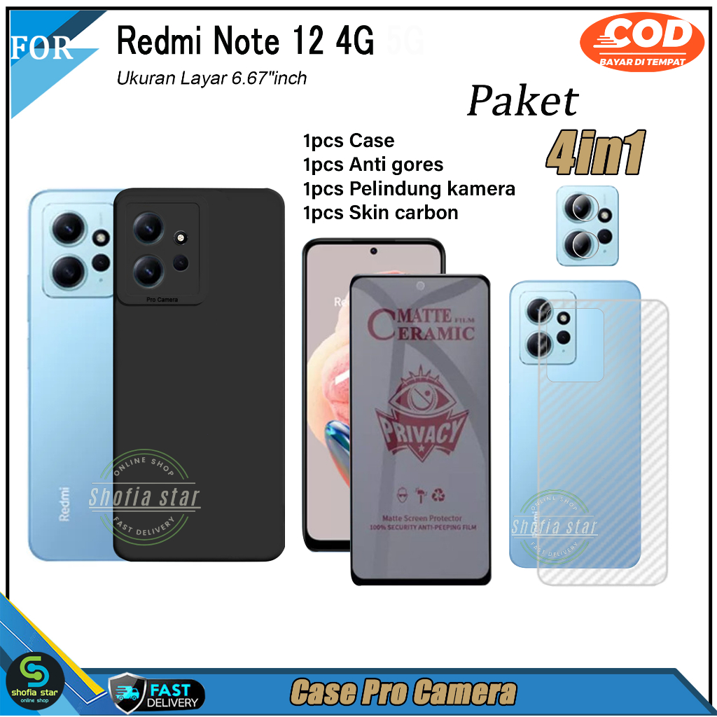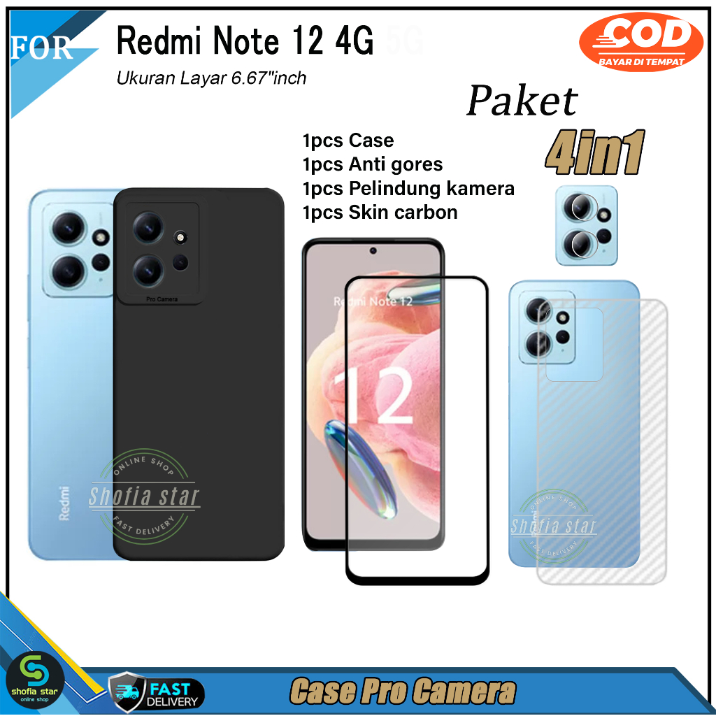 Paket 4in1 Case Redmi Note 12 4G Note 12 Pro 4G Redmi 10 5G Redmi 10 4G 2022 soft case Pro Macaron Casing TERSEDIA WARNA : * BLACK