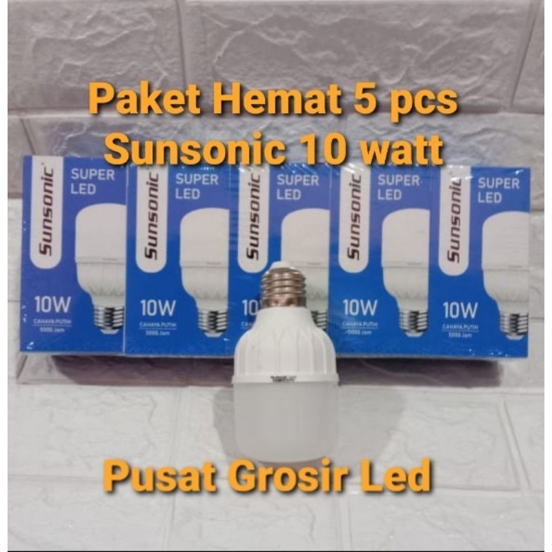 Detail Paket 5 pcs Lampu Led Sunsonic Capsule 10 Watt Cahaya Putih