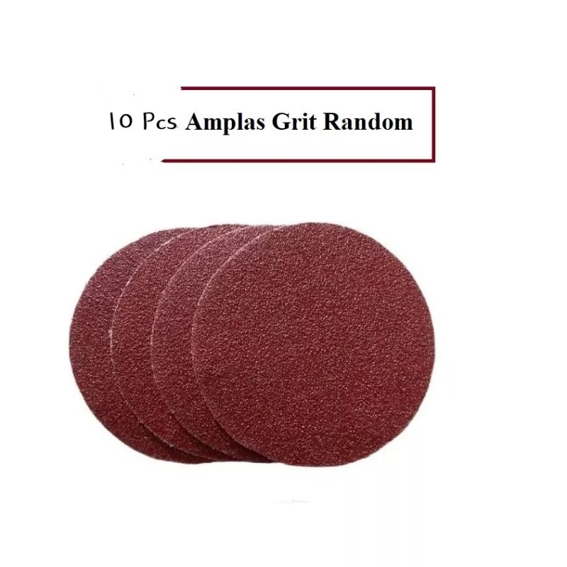 ISI PAKET 6 MACAM 10 Pcs amplas bulat grit random 1 Pcs sanding pad 1 Pcs Flap disc grit random 1 Pcs Batu poles Merk random Sesuai persediaan 1 Pcs Batu potong random 1 Pcs Adaptor Bor gerinda