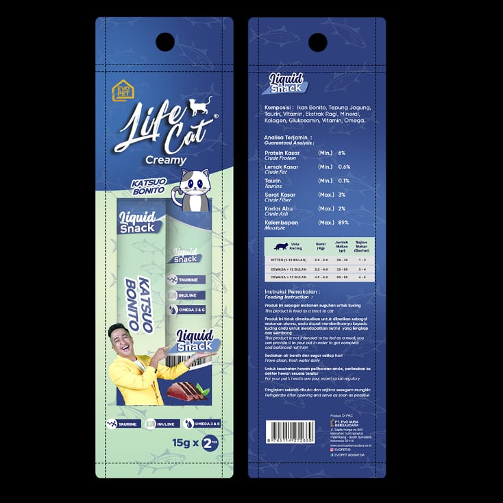 Life Cat Creamy 15g x 2 Cemilan Snack Kucing - Katsuo Bonito