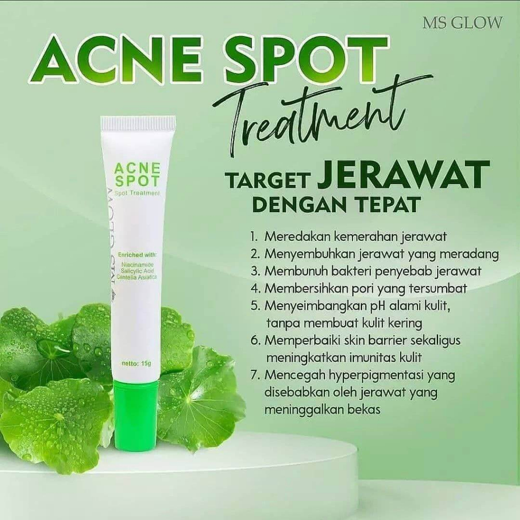 Acne Night Cream dari MS Glow adalah cream malam khusus untuk kulit yang cenderung berminya k& berjerawat, diperkaya dengan Tea tree Oil & sulfur sebagai anti bakteri , mengontrol minyak berlebih dan membantu merawat kulit berjerawat sehingga dapat menenangkan dan meredakan dan menyembuhkan jerawat diwajah. Acne Spot Treatment yang diformulasikan khusus untuk mengempeskan jerawat aktif atau meradang. Dengan sensasi dingin saat diaplikasikan ke jerawat, Acne Spot Treatment membantu membunuh bakteri penyebab jerawat serta mencegah hiperpigmentasi kulit dengan bekas jerawat. **PEMBELIAN PAKET ACNE FREE ACNESPOT**