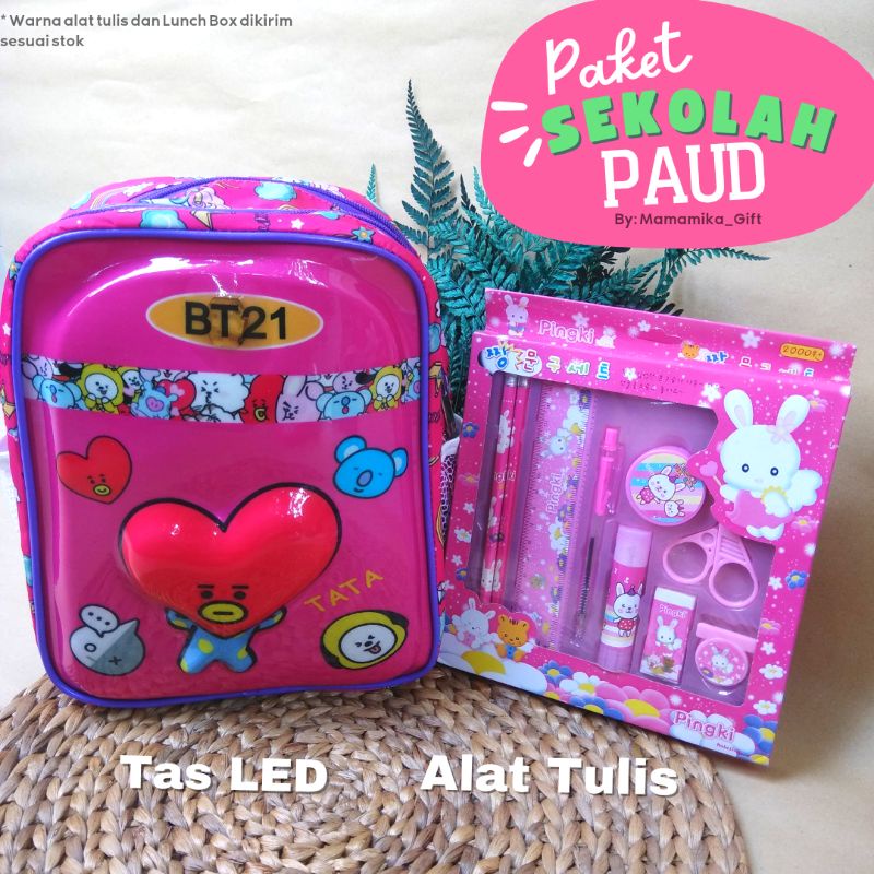 Detail : * Tas Sekolah PAUD * Alat Tulis Set * Botol Minum / Lunch Box