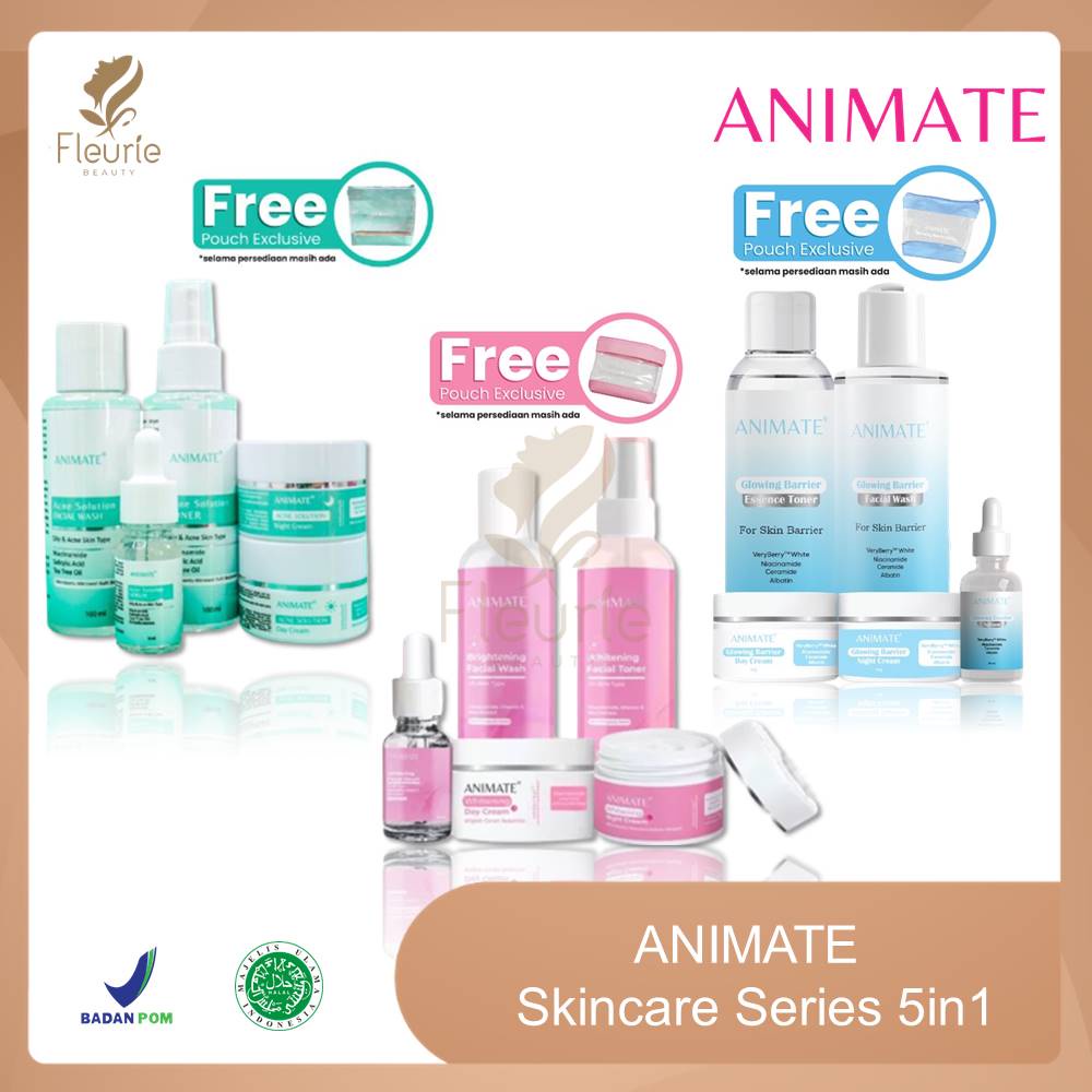 Detail PAKET ANIMATE Acne Solutions Series / Whitening Series 5in1 / Glowing Barrier Series 5in1 - Paket Skincare Original BPOM