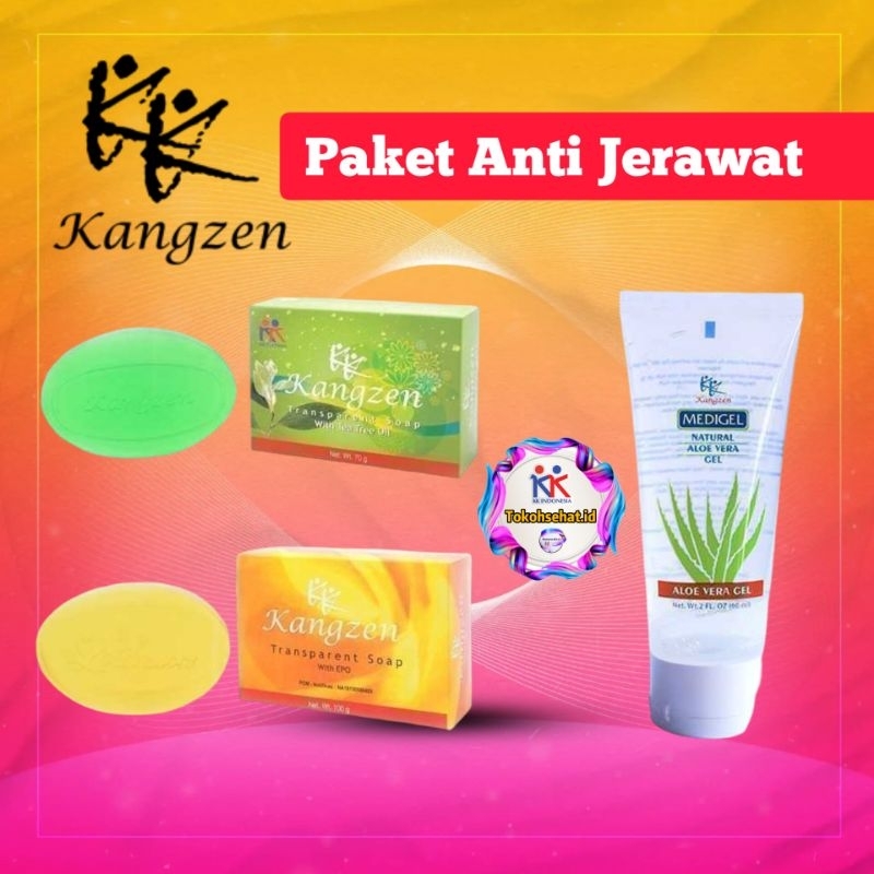 Perawatan & Kecantikan > Perawatan Wajah > Perawatan Wajah Lainnya > Paket Anti Jerawat Kangzen Transparant Soap With Tea tree oil Epo Medigel Natural Aloe Vera Original KK Indonesia