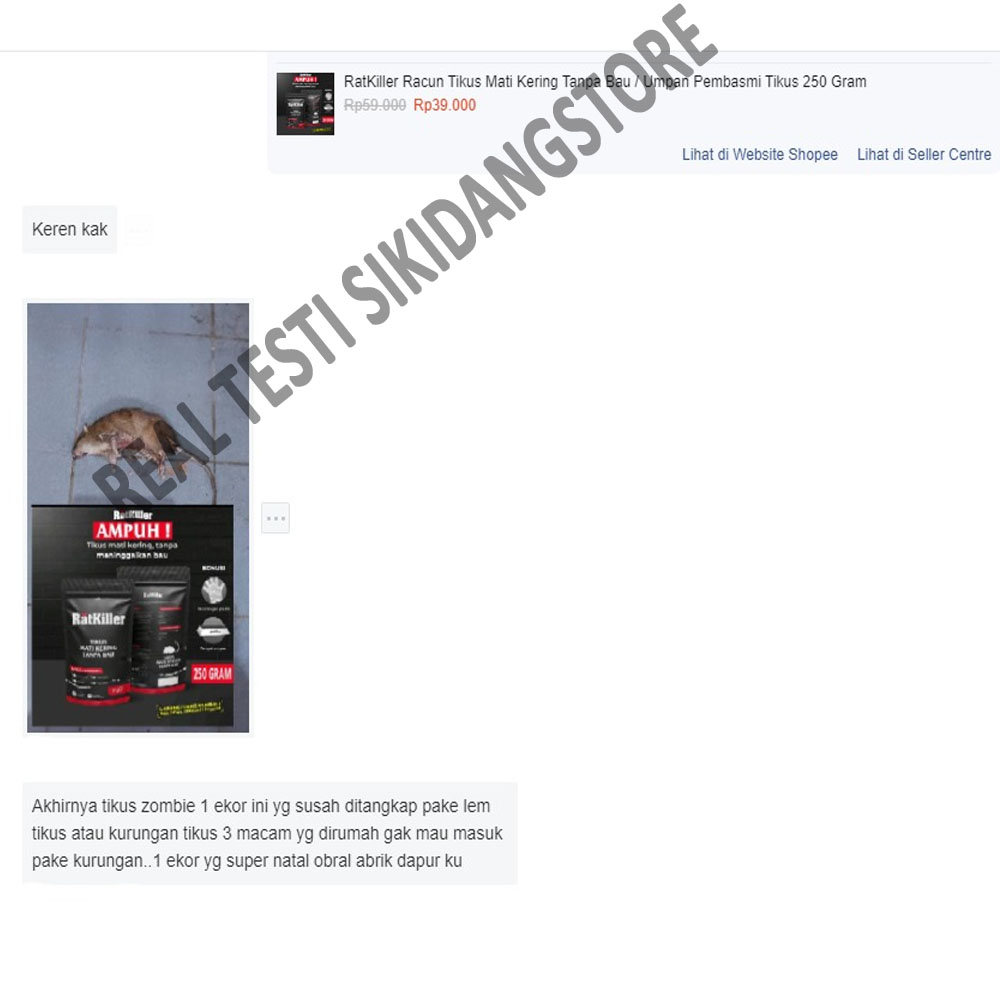 2. Ratkiller 250gr : RatKiller Racun Tikus Mati Kering Tanpa Bau / Umpan Pembasmi Tikus Yang dapat digunakan diruangan indoor maupun outdoor seperti rumah, perkantoran, pertokoan, taman rumah, bahkan sampai ladang maupun perkebunan. Semua bisa mati dengan racun yang satu ini