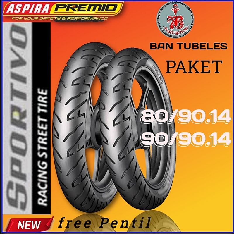 Detail PAKET BAN TUBELESS ASPIRA PREMIO SPORTIVO 80/90 dan 90/90.14 FREE PENTIL