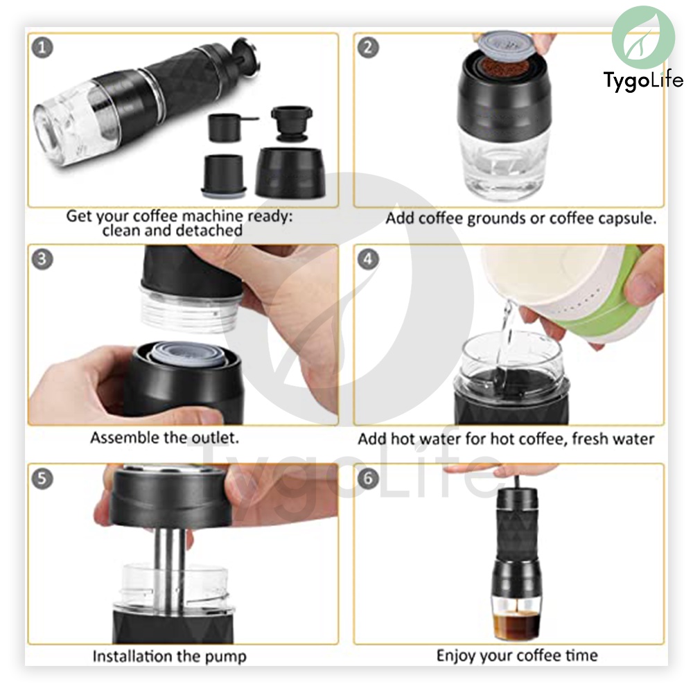 TANSER Espresso Coffee Maker Portable Manual mirip Staresso Minipresso Tygopresso Pembuat Kopi dapat membuat kopi dengan 3 cara dalam satu alat, bisa dengan ground coffee, capsule dan dolce gusto. Sangat simple untuk di rumah, piknik atau di kantor. Kopi sekelas Starbucks akan selalu ada menemani kamu.