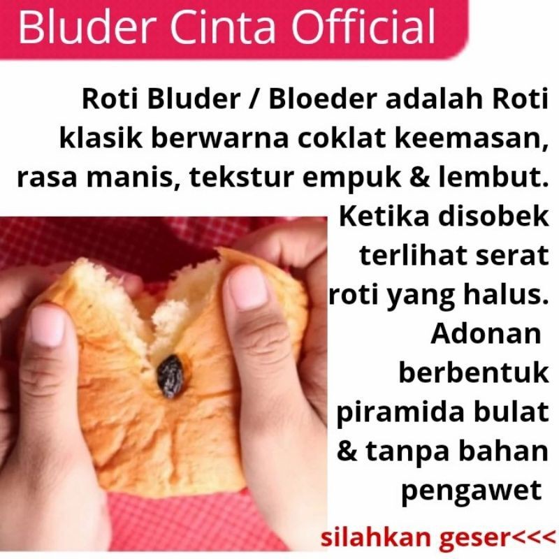 * SEJARAH ROTI BLUDER / BLOEDER Roti Bluder / Bloeder adalah Roti Klasik Berwarna Coklat Keemasan. Ciri Khas Roti ini adalah Rasanya Manis, Tekstur Sangat Empuk dan Kalau Disobek Akan Terlihat Serat Rotinya. Adonan Berbentuk Piramida Bulat. Roti Ini Dibuat Tanpa Bahan Pengawet / Pelembut Buatan. Roti Bluder Sudah Ada Sejak Zaman Kolonial Belanda. Roti Ini Dibawa Oleh Orang Eropa. Bluder merupakan Sajian Istimewa Bagi Tentara Belanda Waktu Itu. Kini Roti Bluder Dikenal Sebagai Oleh oleh Khas Kota Madiun, Jawa Timur. Bahkan juga sebagai Ikon Kuliner Madiun. Belum Lengkap Jika Berkunjung Di Toko Kami Jika Tidak Membeli Bluder Cinta Madiun.