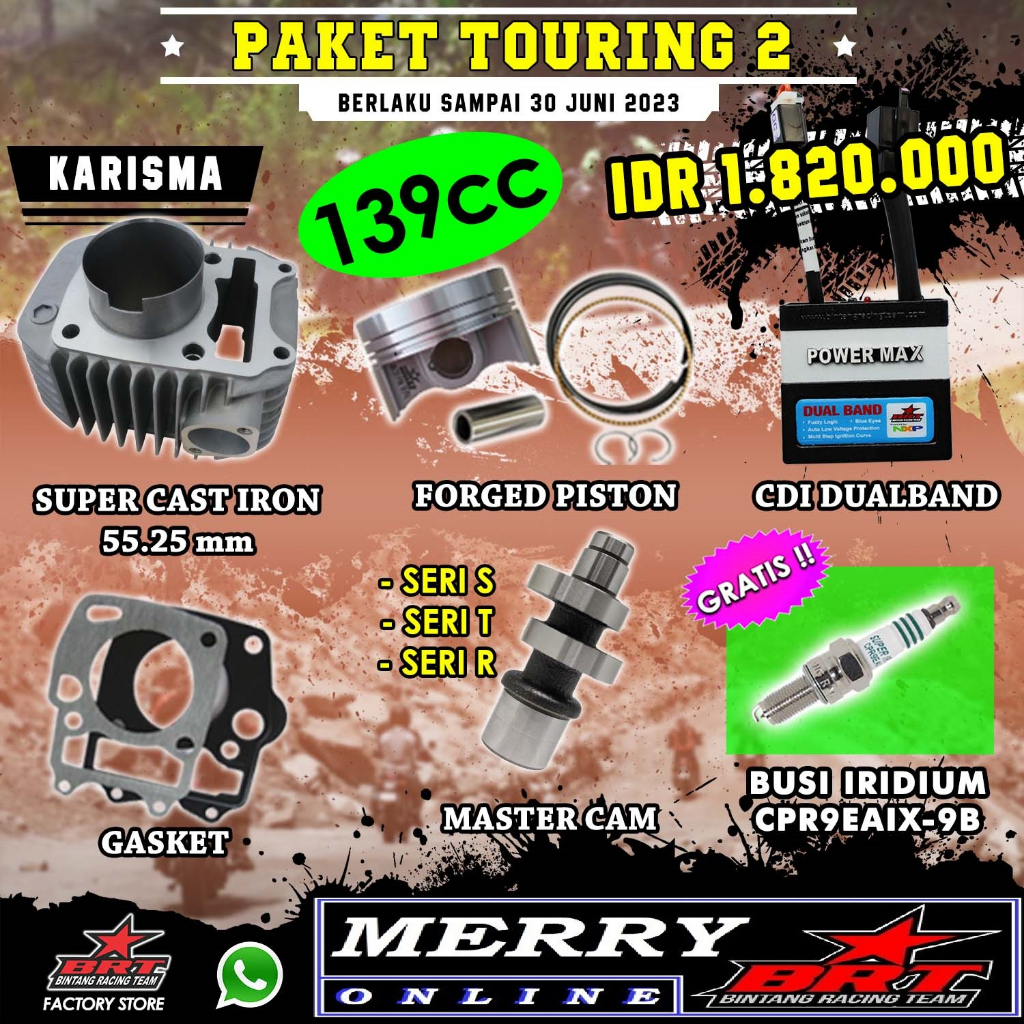 Detail Paket Bore Up BRT Touring 2 Karisma Supra X 125 Kirana 139cc