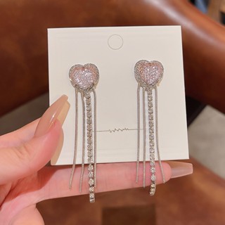 Anting Stud 925 silver needle Model Rumbai Panjang Bentuk Hati Warna Pink Untuk Wanita