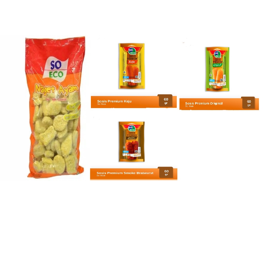PAKET BUNDLING 18 PACK NUGGET AYAM SO ECO 1KG & 40 PCS SOSIS SINGLE SO NICE PREMIUM 60GR