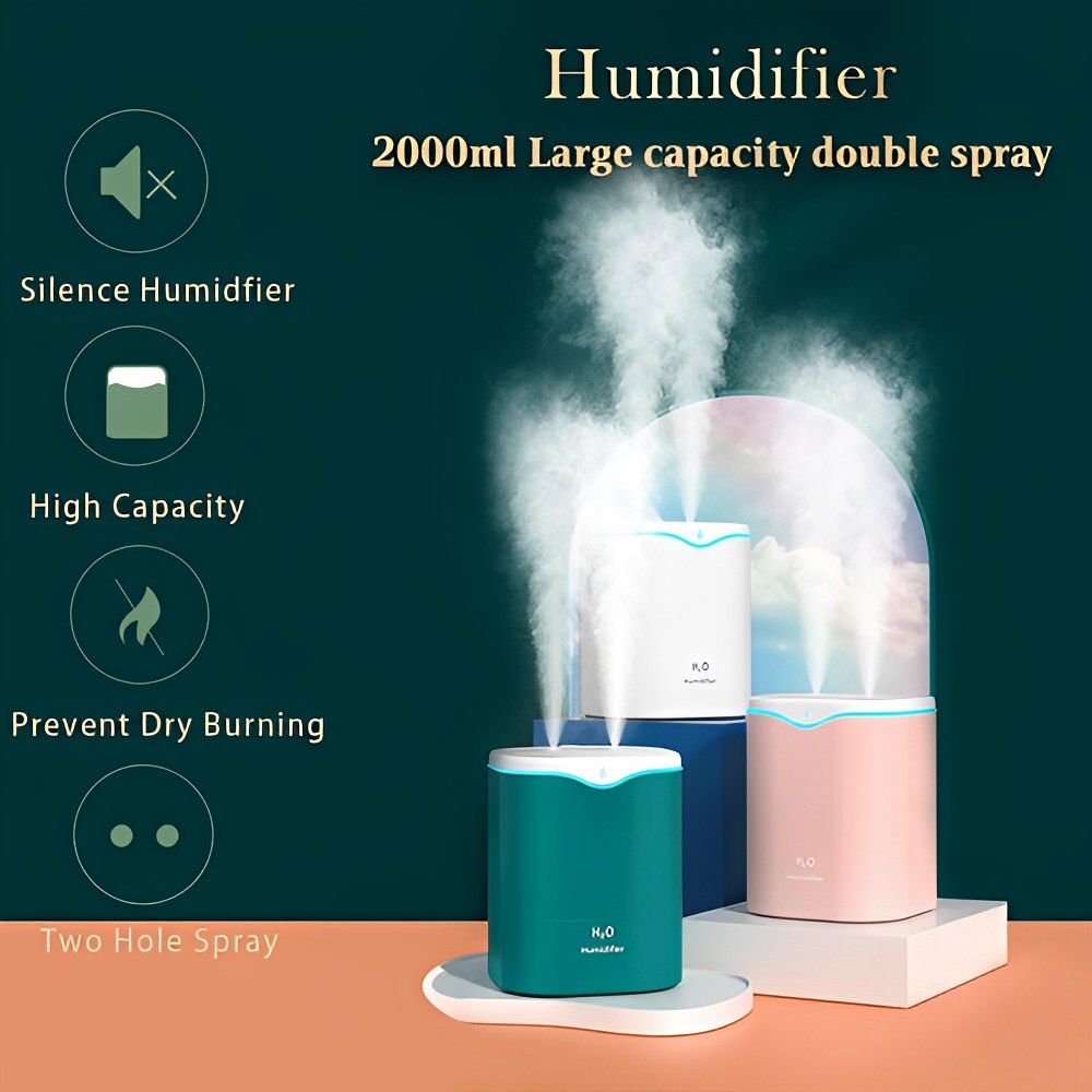 Isi Kemasan : 1 * 2000ML Dual Mist USB Air Humidifier 1 * Kabel USB 1 * Panduan Pengguna