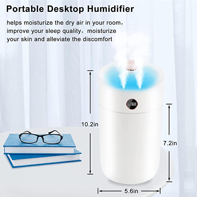 Fungsi : Humidifikasi, Pembersih Udara, Aroma Diffuser, Tangki Air 3300ml, dengan Lampu Malam LED Penggunaan: Peralatan Rumah Tangga, Desktop Kantor, Kamar Tidur, Rumah