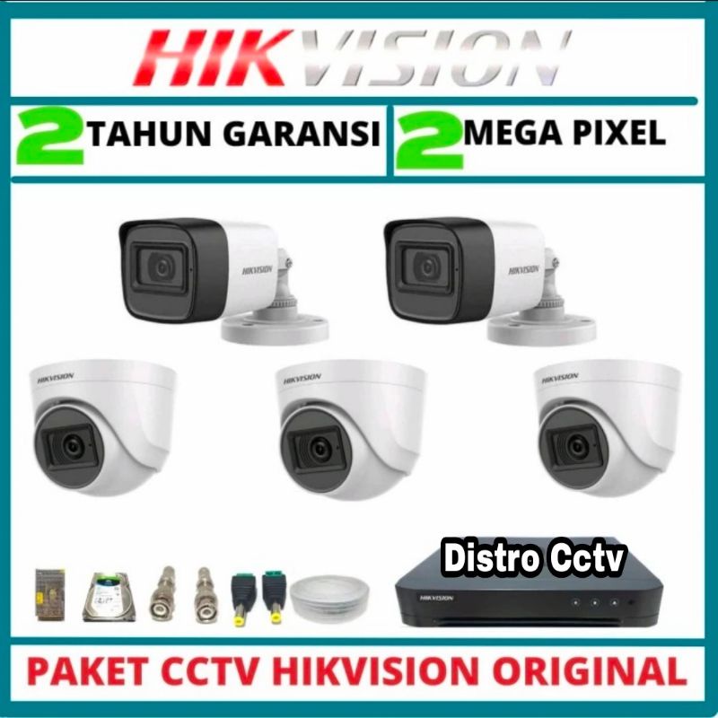 Detail Paket Camera Cctv Hikvision 8ch 2mp Turbo HD 5 Kamera Cctv Indoor Outdoor Komplit DvR 8 Channel 2 MP Full Set