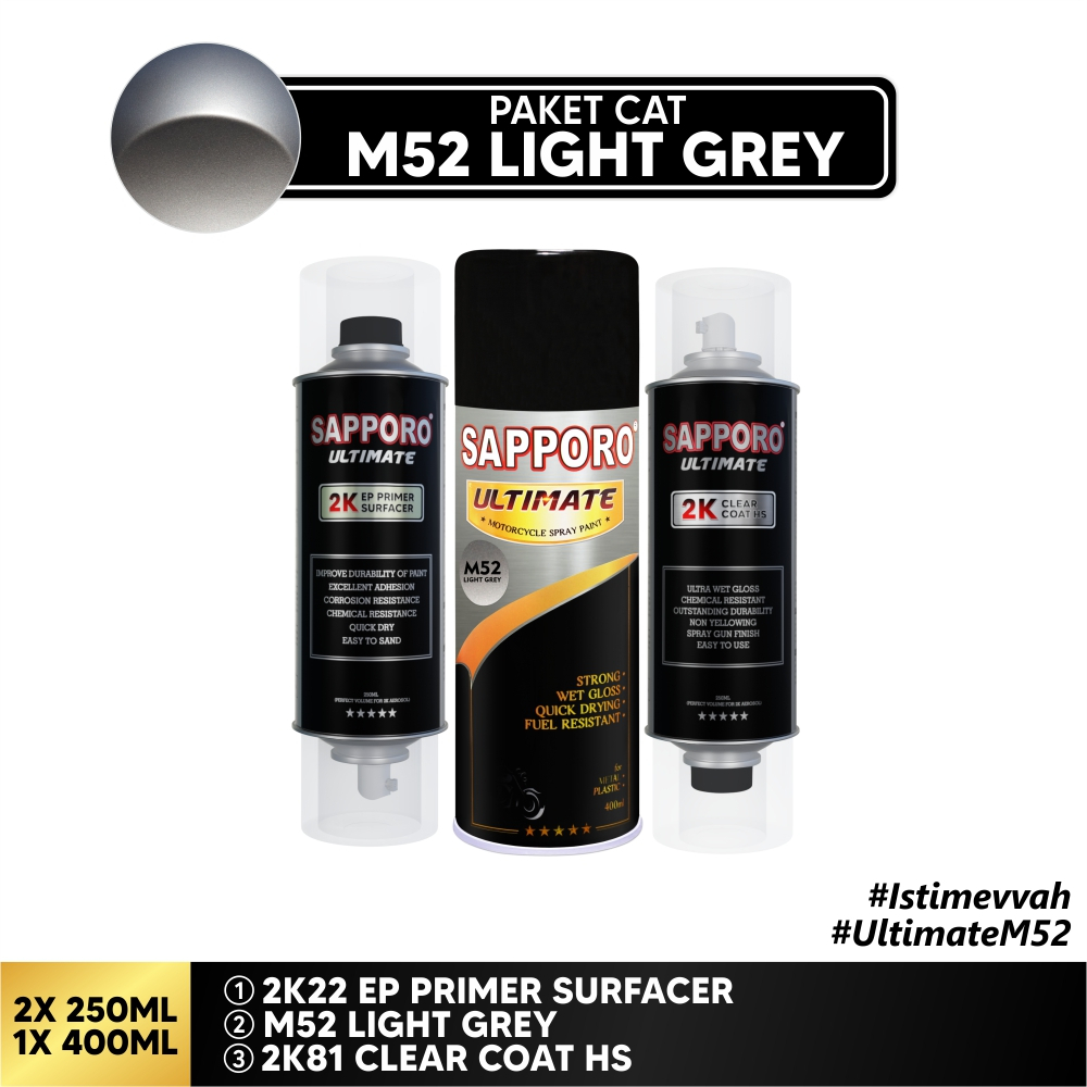 Detail Paket Cat M52 Light Grey / Sapporo Ultimate / Cat Spray Semprot Aerosol Terbaik