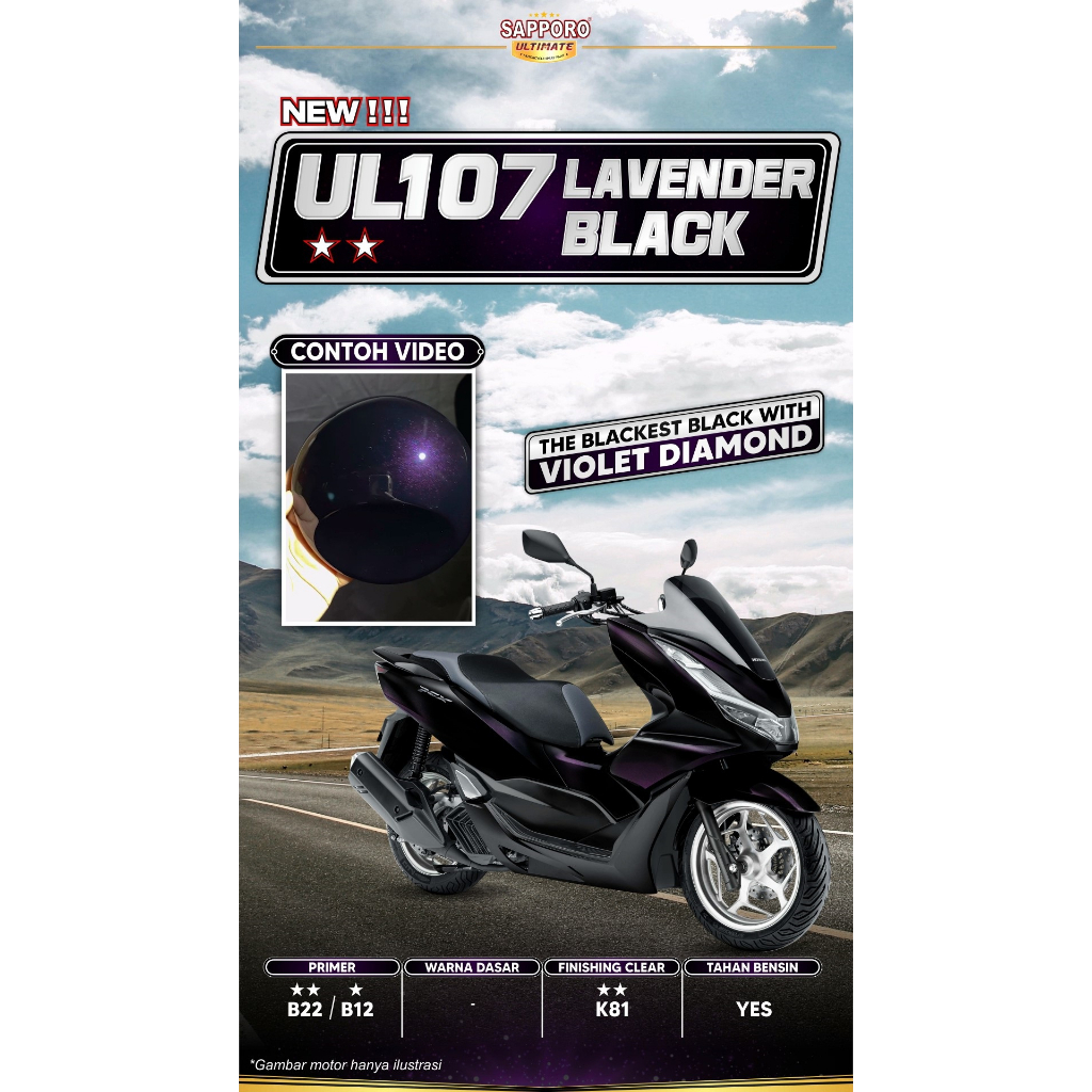 Detail Paket Cat UL107 Lavender Black / SAPPORO ULTIMATE / Cat Semprot