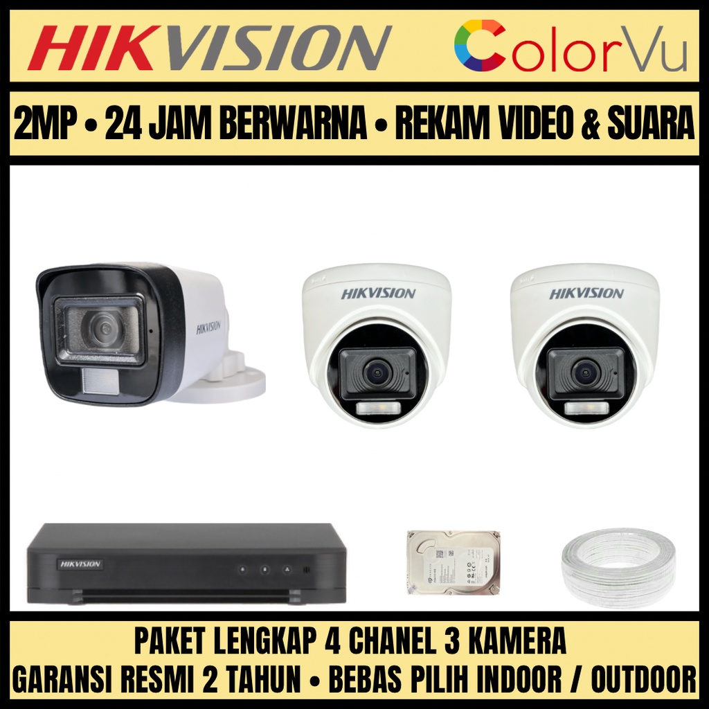 3 Unit Camera Hikvision Colorvu 2MP (Bebas pilih Indoor atau Outdoor)