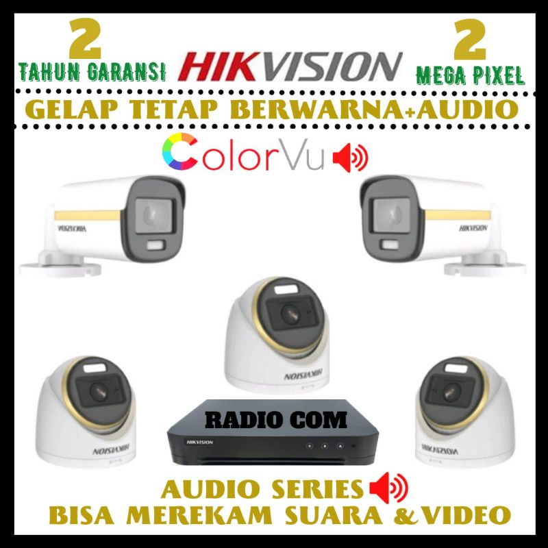 Detail PAKET CCTV HIKVISION COLORVU 2MP 8 CHANNEL 5 KAMERA AUDIO FUL COLOR SIANG MALAM BERWARNA
