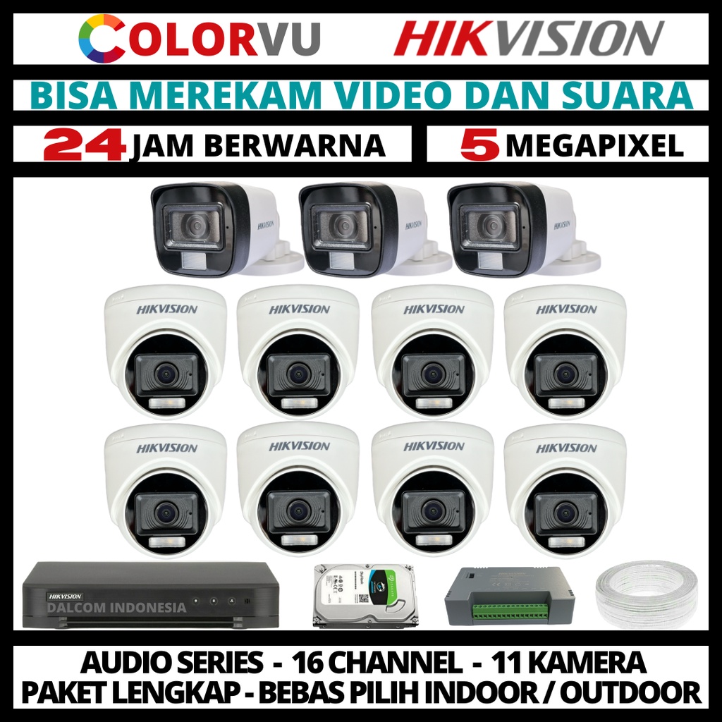 Detail PAKET CCTV HIKVISION COLORVU 5MP 16 CHANNEL 11 KAMERA COLORFUL