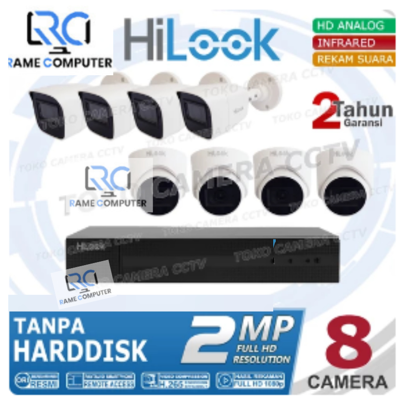 Detail PAKET CCTV HILOOK 2MP 8 CHANNEL AUDIO NO HDD