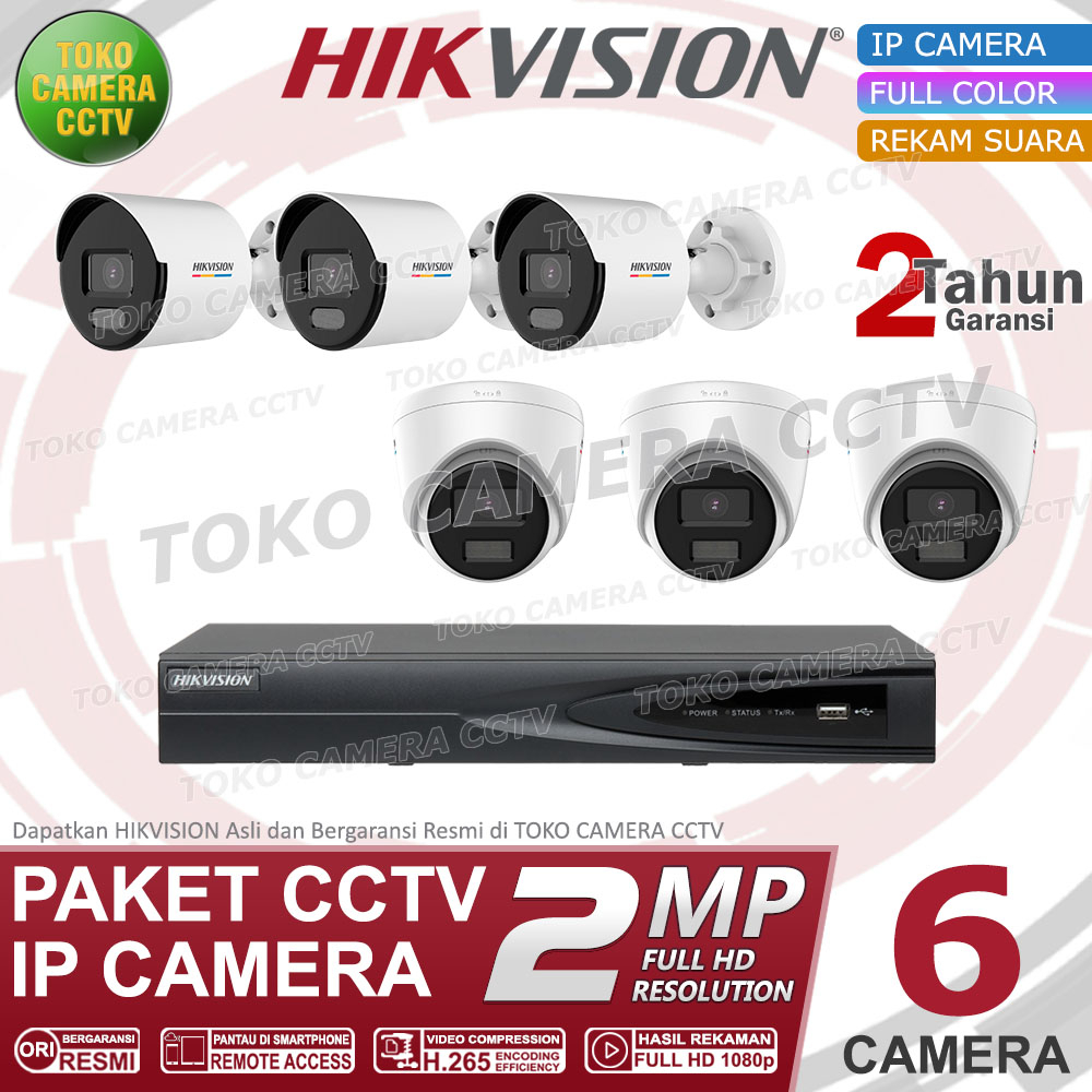 Detail PAKET CCTV IP CAMERA HIKVISION 2MP COLORVU AUDIO 8 CHANNEL 6 KAMERA