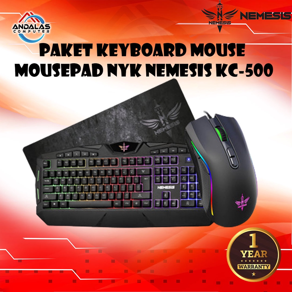 PAKET COMBO KEYBOARD MOUSE MOUSEPAD GAMING GAME RGB NYK NEMESIS KC-500