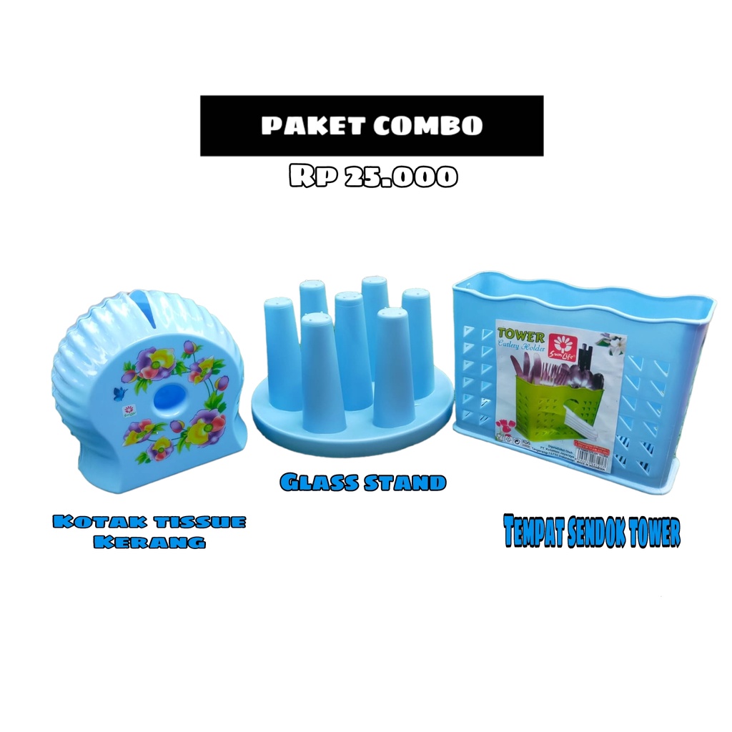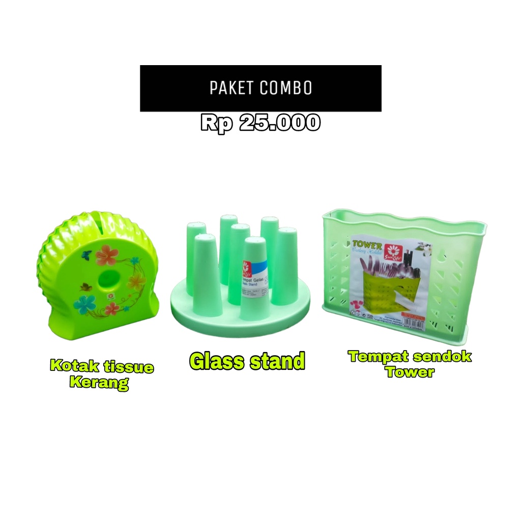 Paket combo 25 ribu mendapatkan : tempat tissue kerang tempat sendok tower glass stand