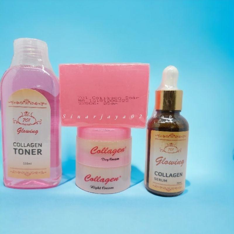 Perawatan & Kecantikan > Paket & Set Kecantikan > Paket Cream Collagen 5in1 Glowing Original ( Cr SM + Serum 701 + Toner 701 + Sabun 701 Ping)