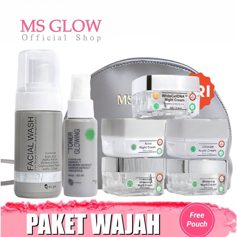 Detail (PAKET+DAY CREAM) READY COD MS GLOW PAKET WAJAH LENGKAP WHITENING ACNE ULTIMATE LUMINOUS WHITECELL DNA