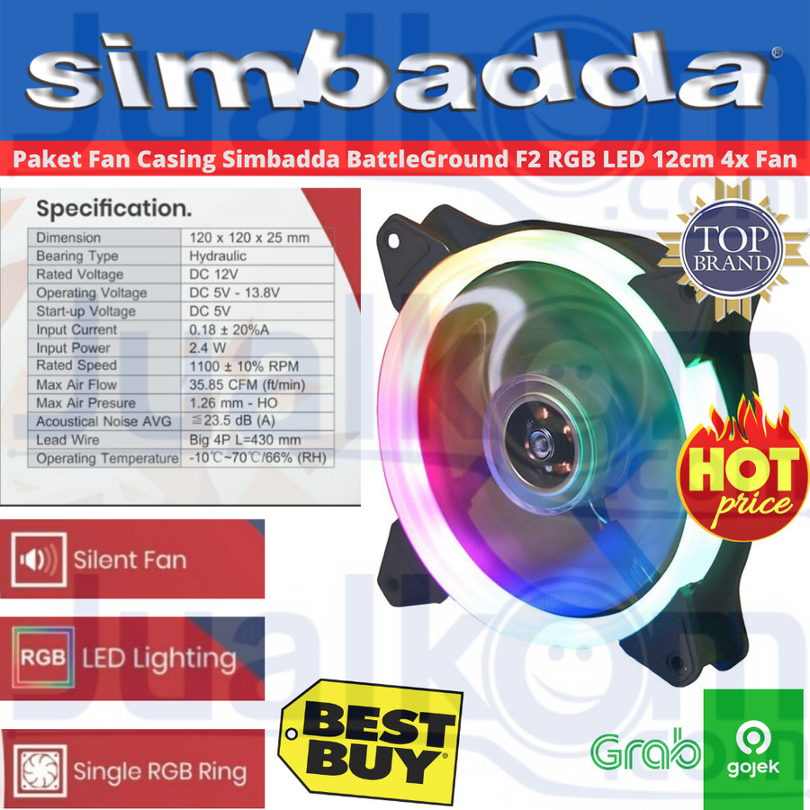 Detail Paket Fan Casing Simbadda BattleGround F2 RGB LED 12Cm 5X Fan