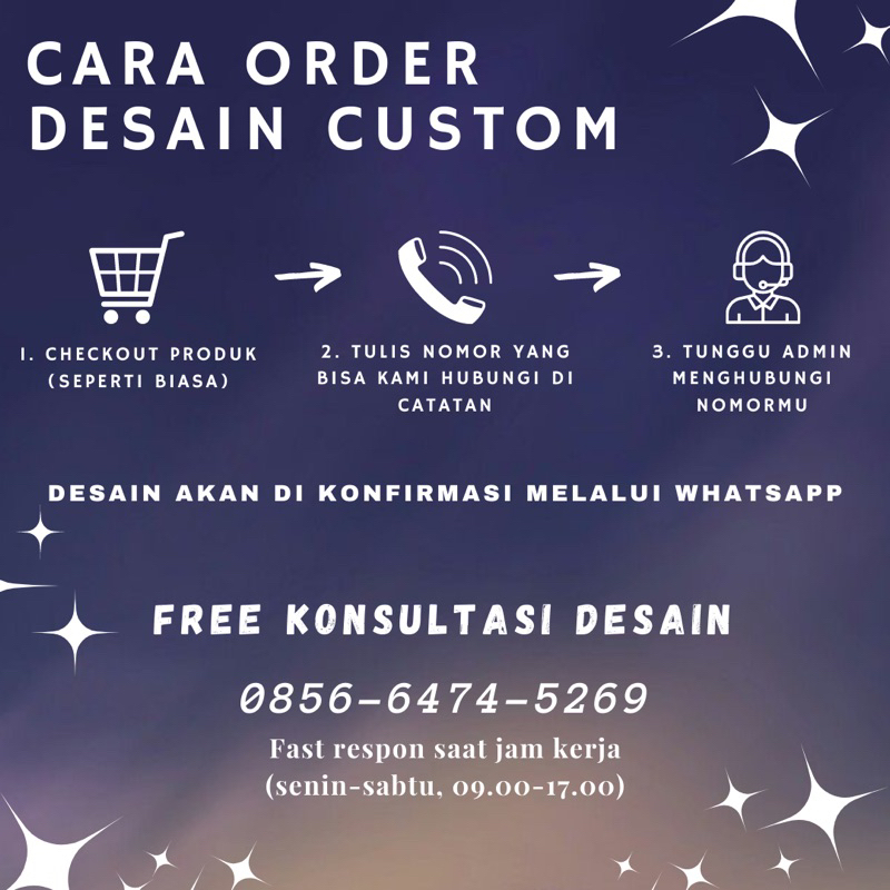 📝Cara Order Custom dan Request : - Checkout produk seperti biasa - Sertakan nomor yang bisa dihubungi di catatan saat checkout - Tunggu admin hubungi. Kami usahakan secepatnya, jam kerja (senin-sabtu, 09.00 - 17.00) - Mohon bersabar jika admin belum respon
