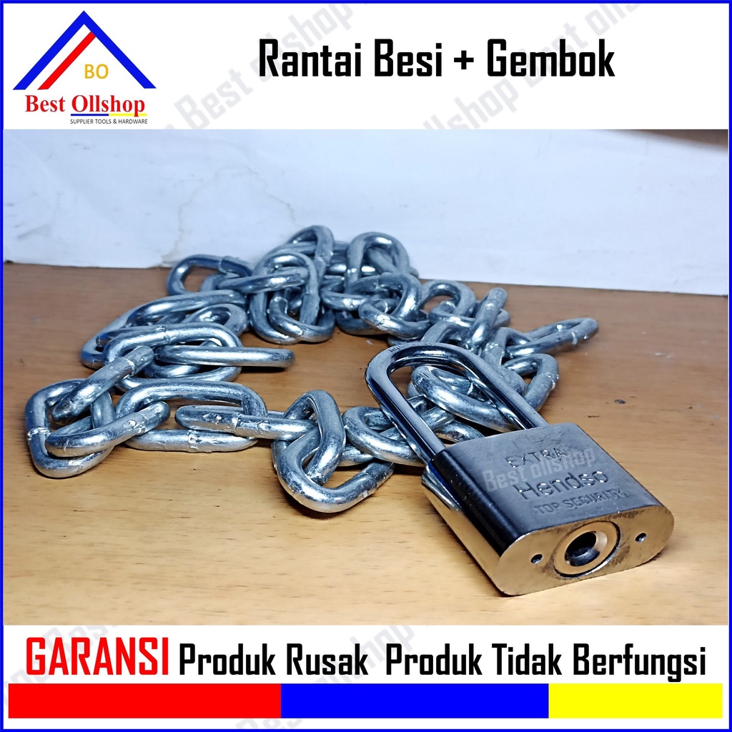 Perlengkapan Rumah > Alat Pengaman > Perangkat Pintu & Gembok > Paket Gembok Rantai 1 M Gembok Kunci Rumah Pagar Sepeda Motor Rantai Besi 3/16 5 MM Gembok 40 MM