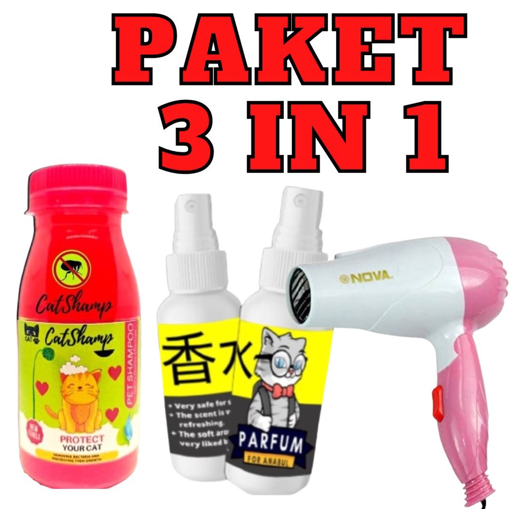 ♥SEMUA READY SELAMA MASIH BISA DIKLIK BELI♥ DISARANKAN ORDER BUBBLE WRAP AGAR BARANG TETAP AMAN SAMPAI TEMPAT TUJUAN PAKET 3 IN 1 -CATSHAMP 80ML -PARFUM KUCING -HAIRDRYER
