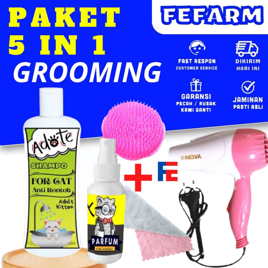 ISI : * Shampo Adote Anti Rontok * Handuk Microfiber UK 23,5 x 14,5 * Sisir * Parfum Kucing *HAIR DRYER KUCING