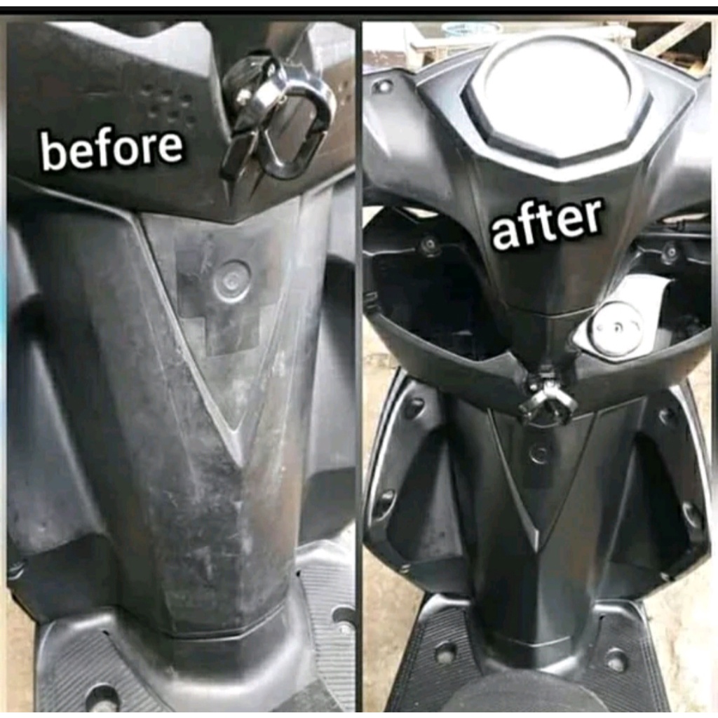 Cara pemakaian : a.cuci motor dengan bersih b.tempatkan motor pada tempat yang teduh, hindari paparan langsung dari sinar matahari c.semprotkan AUTO BLACK pada ; body kasar hitam saja D.gunakan kuas cat biasa ukuran sedang untuk hasil maksimal E.diamkan selama 1 jam, jemur dibawah sinar matahari F gunakan poles kedua dan ketiga utk hasil maksimal atau masih blm rata