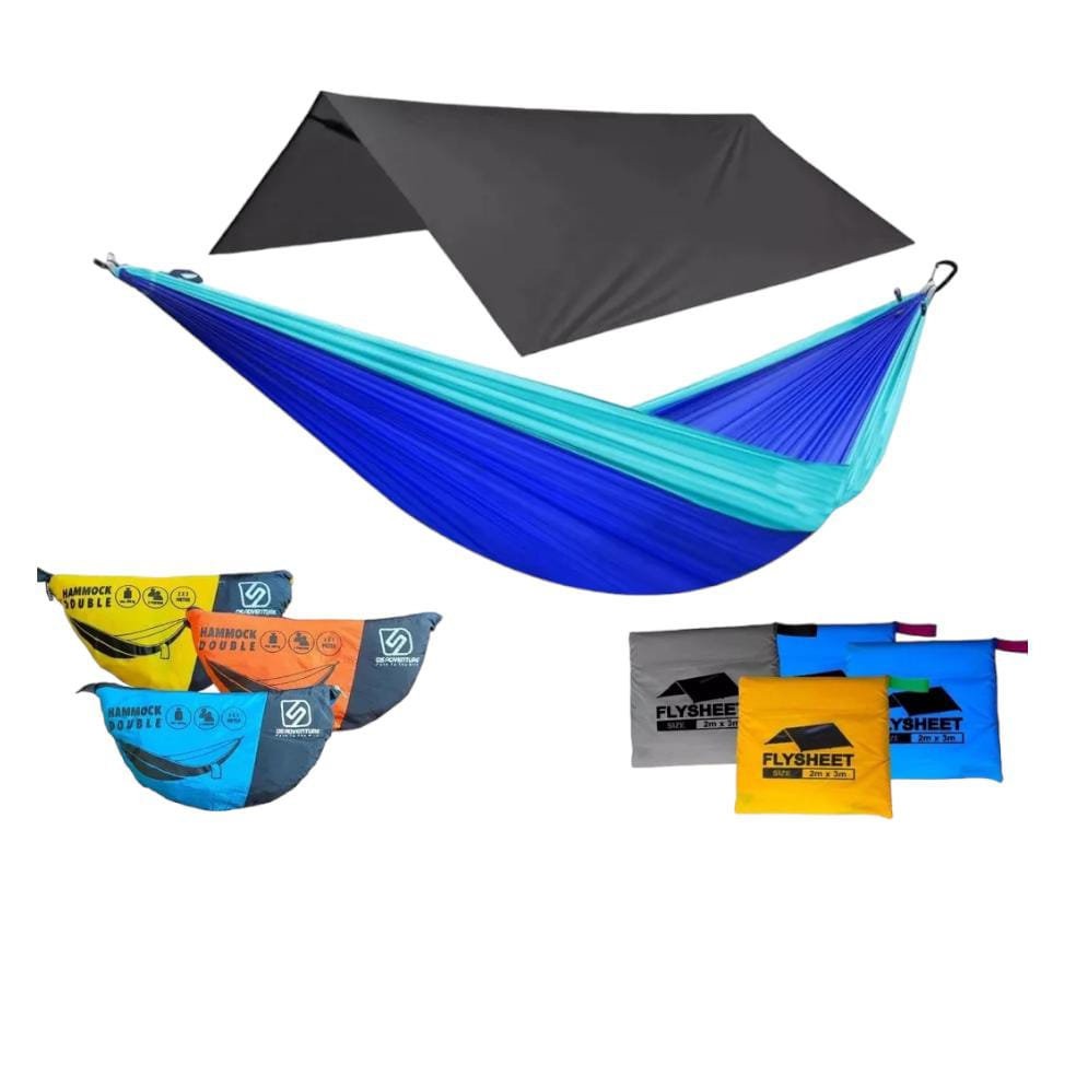 Paket hammock double bartex ds adventure + flysheet 2x3 - paket hammok flysheet - paket plesit hamok - flysheet 2x3 waterproof - hammock ayunan jumbo