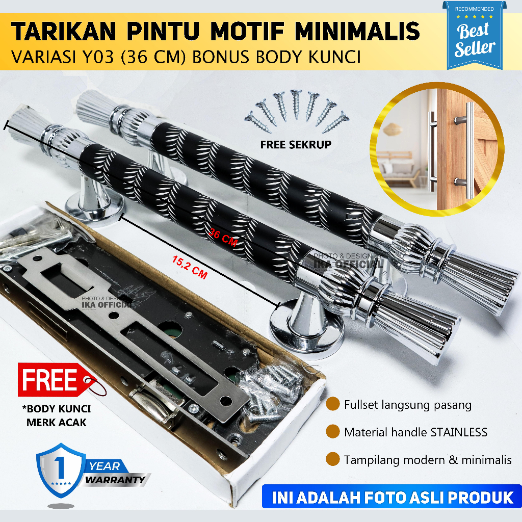 Detail Paket Handle pintu rumah 45cm 42cm dan 33cm body kunci pelor murah minimalis Tarikan pintu Gagang pintu rumah stainless hendel handel pinhandle pintu rumah stainless set body kunci tarikan gagang pintu rumah minimalis pegangan pintu rumah handel hendel pi