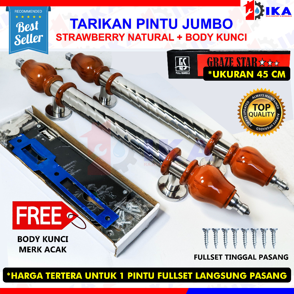 Paket Handle pintu rumah 45cm 42cm dan 33cm body kunci pelor murah minimalis Tarikan pintu Gagang pintu rumah stainless hendel handel pinhandle pintu rumah stainless set body kunci tarikan gagang pintu rumah minimalis pegangan pintu rumah handel hendel pi