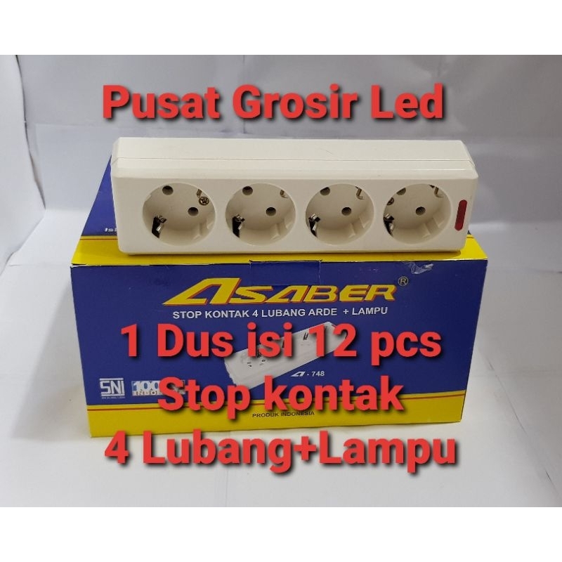 Elektronik > Kelistrikan > Saklar > Paket Hemat 12 Pcs (1 Box) Stop Kontak 4 Lubang Asaber SNI + Lampu Indikator