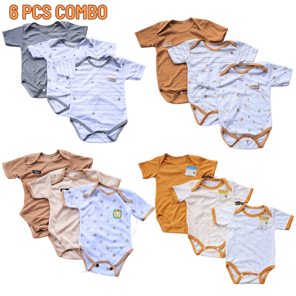 Paket Hemat 6 Potong Jumper Jumpsuit Baju Kodok Lengan Pendek Bayi 0 3 Bulan Kombinasi Polos Motif Bisa COD